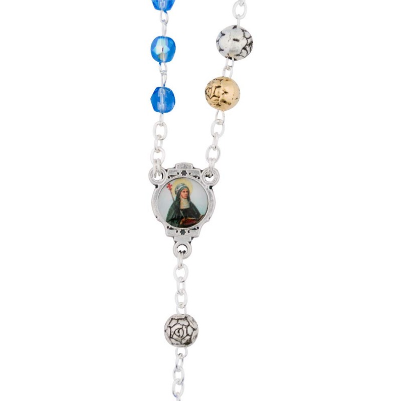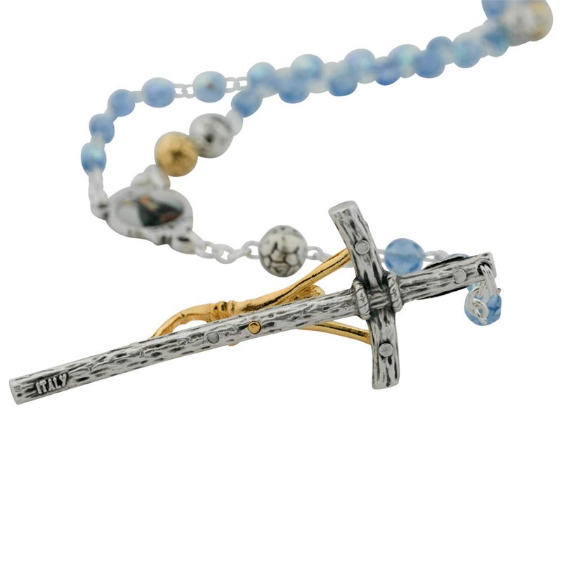 St. Brigid Beautiful Blue Glass Rosary | Gold-Tone and Silver-Tone Crucifix and Our Father Beads | Great Christian Catholic Gift for First Communion and Confirmation | Made in Italy