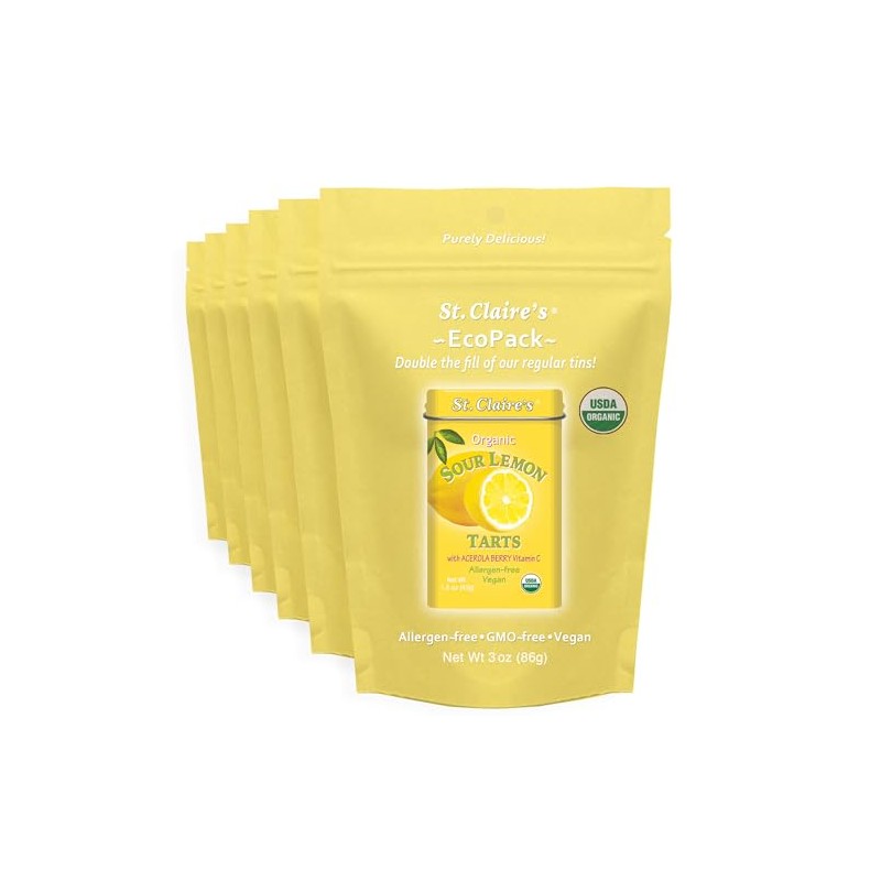 St. Claire’s Organic Sour Lemon Tart Candies – 6-Pack EcoPack, 3 oz Each | Certified Organic, Vegan, Gluten-Free, Allergen-Free, Non-GMO, Low Calorie, Plant-Based | Made in USA