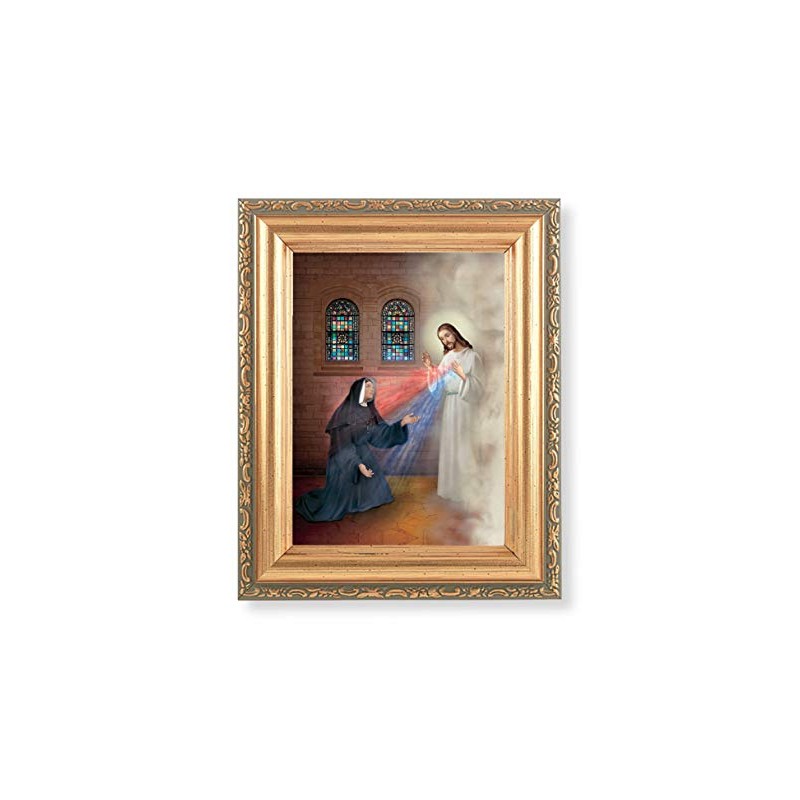 St. Faustina with Divine Mercy Antique Gold Framed Art