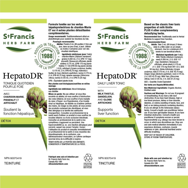 St. Francis Herb Farm St. Francis Herb Farm Hepato DR® Tincture | Daily Liver Support Supplement | Supports Liver Function and Liver Detox | Dandelion | Milk Thistle | Globe Artichoke | 100mL