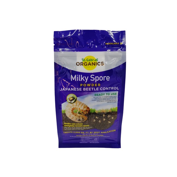 St. Gabriel Organics Milky Spore Powder is a one-time application Japanese beetle control that kills the grub stage of Japanese beetle without harming beneficial insects. The spores repress Japanese beetle grubs for 10 years, and can last up to 20 years. Size: 10 ounce