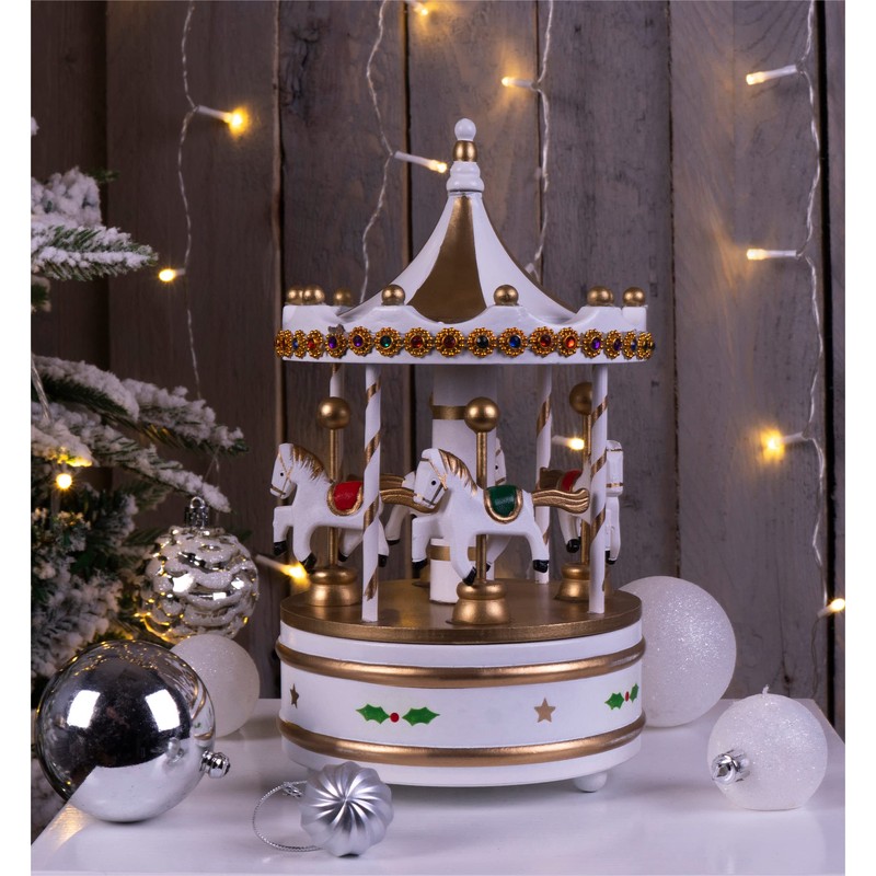 St Helens Home & Garden Wooden Carousel Music Box (White & Gold)