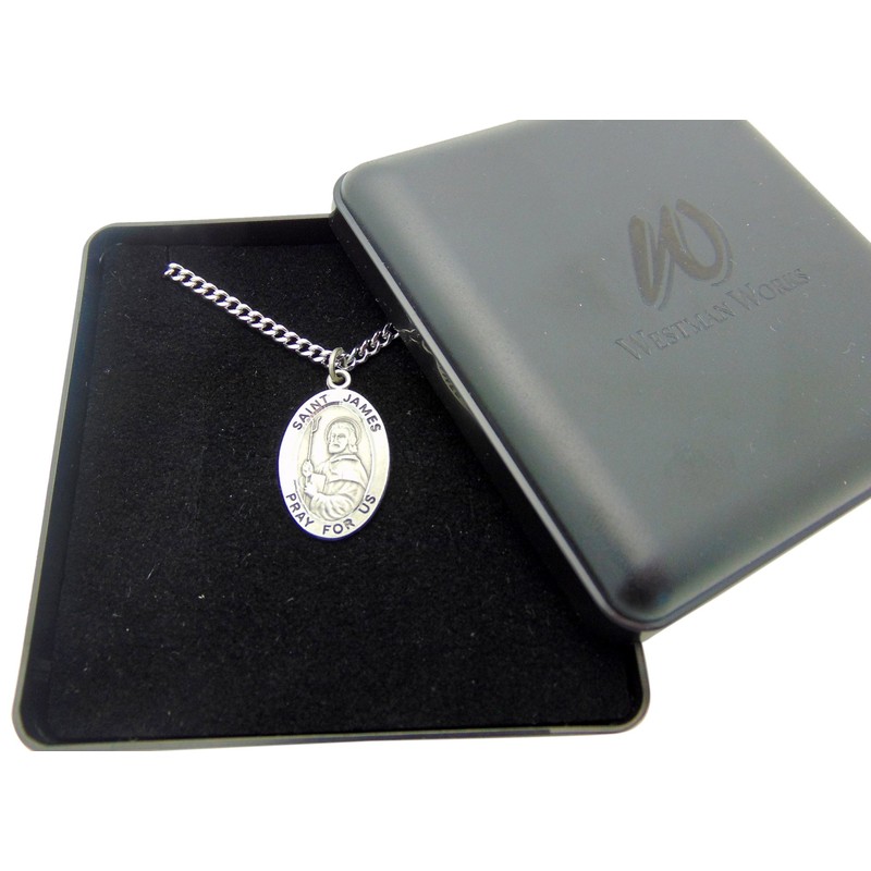 St James Solid Pewter One Inch Saint Medal with Stainless Steel Chain