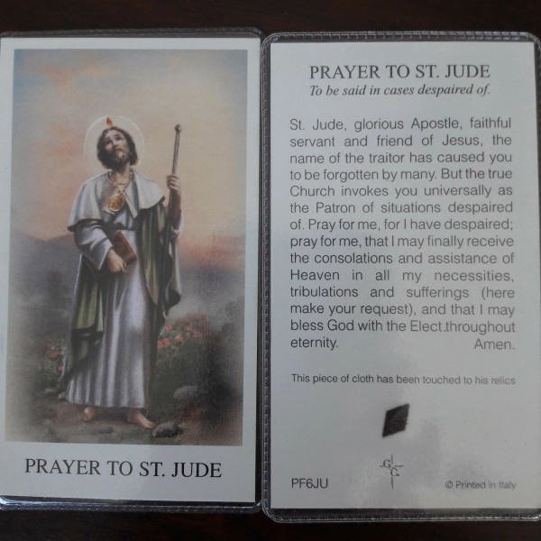 St. Jude - Prayer To - Relic Laminated Holy Card - Blessed by Pope Francis
