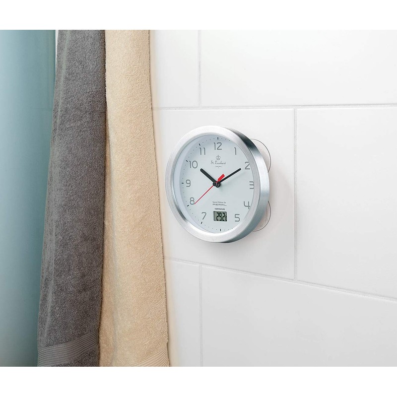 St Leonhard Bathroom Clock, Bathroom Wall Clock with LCD Thermometer and Aluminium Frame, IPX4 Bathroom Wall Clock