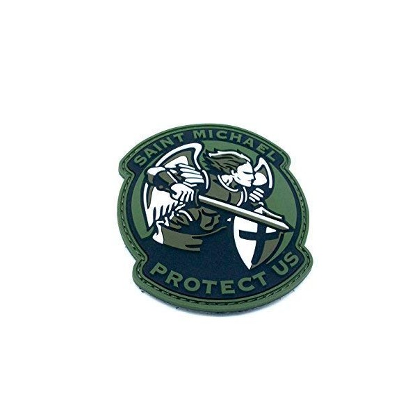 St Michael Protect Us Crusader Green PVC Airsoft Patch
