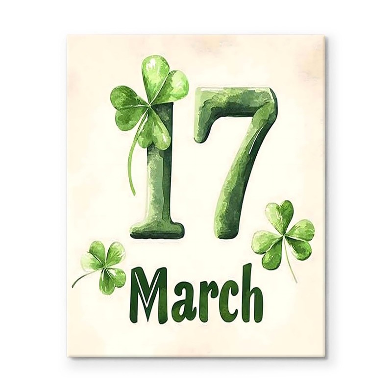 - Celebrate St. Patrick’s Day in Style: Featuring the iconic "17th March" date surrounded by vibrant shamrocks, this canvas print is perfect for adding a festive touch to your home or office this St. Patrick’s Day.