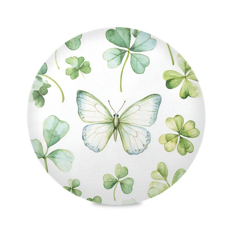 St. Patrick's Day Placemats Green Watercolor Butterfly Clover Round Placemats Set of 6 for Kitchen Table Washable Table Mats Place Mats