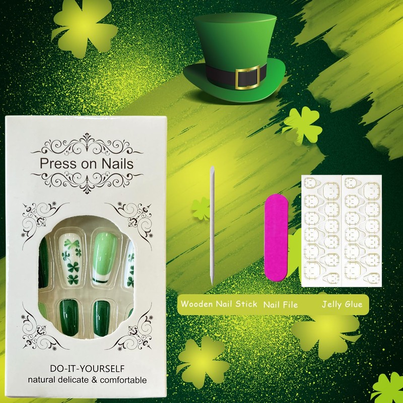 - Easy to Use: Choose the suitable St. Patrick's day fake nails, polish the nail bed, paste the jelly glue we give you, press the fashion nail art in 30 seconds, and create the nail art that girls like,If the size is not suitable, it can be polished to the size of the nail cap with a friction tool