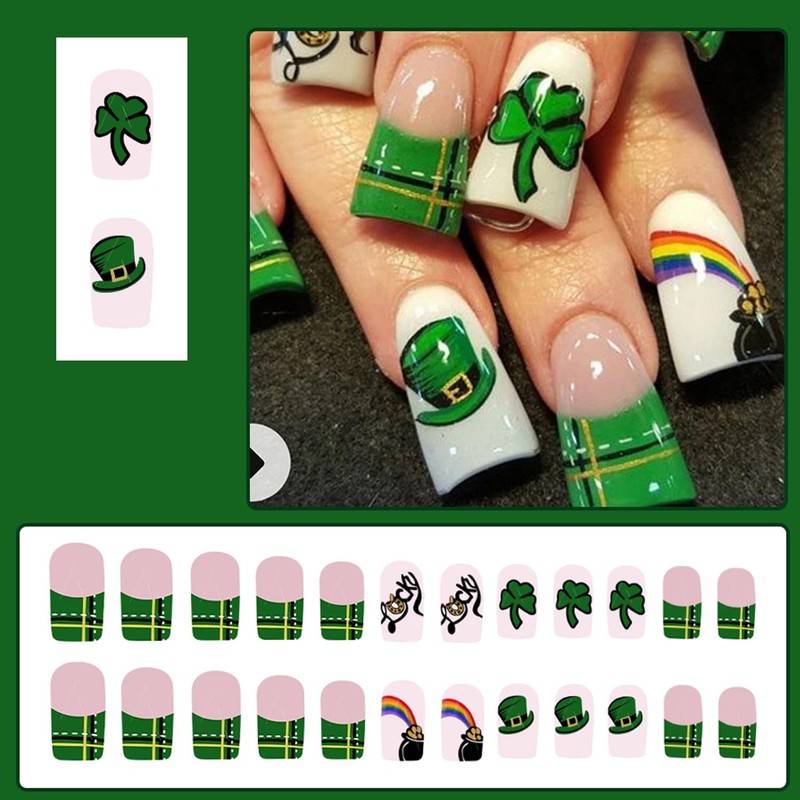 - ☘️Wonderful gift: French Tip press on nails suitable for professional nail technician salon nail art designs, nail art lover DIY at home. These saint patty's day nail designs can make you stand out at dates, weddings, proms, and st.