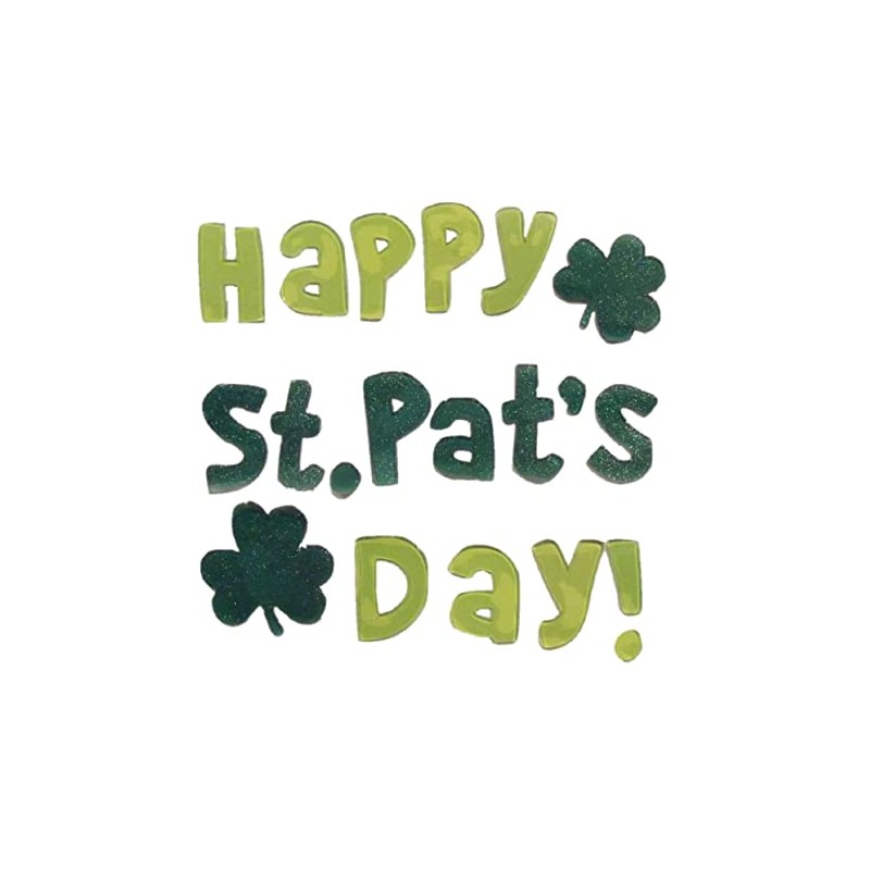 St. Patrick's Day Reusable Gel Window Clings with Glitter ~ Happy St. Pat's Day, Shamrocks (20 Clings, 1 Sheet)