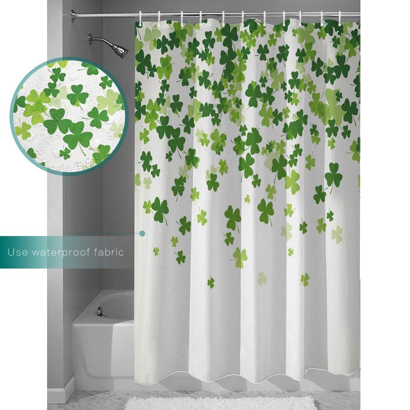 St Patrick Shower Curtain 72 inches Long Spring Shamrocks Polyester Fabric Sh...