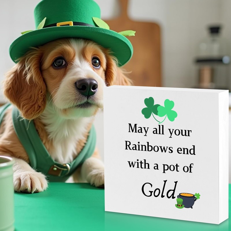 St. Patricks Day Decor Irish Blessing Sign May All Your Rainbows End with a Pot of Gold Decorative Wooden Box Sign for Home Kitchen Irish Blessing Gift Table Shelf Display