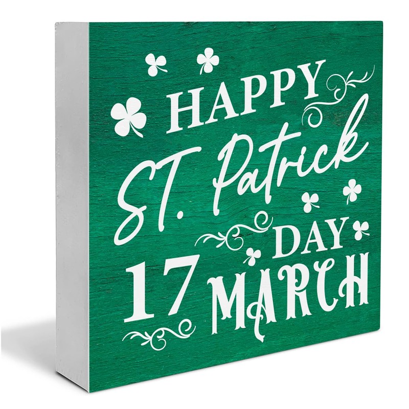 St. Patricks Day Decor Rustic Happy St. Patricks Day March 17 Wooden Sign St Patricks Day Decorations Home Shelf Decor 5 x 5 Inches