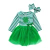 St Patricks Day Outfits Toddler Baby Girls Clover Dress Striped Long Sleeve Mesh Tutu Skirts with Headband 2PCS Set (Green, 1-2 Years)