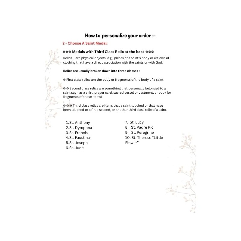 - ❁ Add saint medal (s) and charm (s) for additional fee. You'll receive a total of four (4) charms. 1 crucifix, 1 saint medal, and 2 non-saint charms
