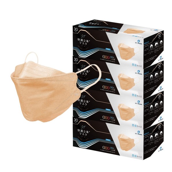 ST-TRADE商標取得済み 個別包装なしST快適立体マスク 120枚入り 4層フィルター構造(メルトブロー不織布2重)口紅がつきにくい 【個別包装なしST-TRADE立体マスク120枚入り】 (クリーム)