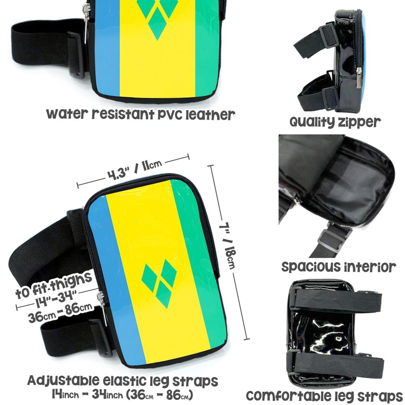 St Vincent Flag Thigh Bag | Leg Harness for Women | Outdoor Waist Pouch | Carnival Hiking Travel Fanny Pack with Adjustable Straps | St Vincent and Grenadines