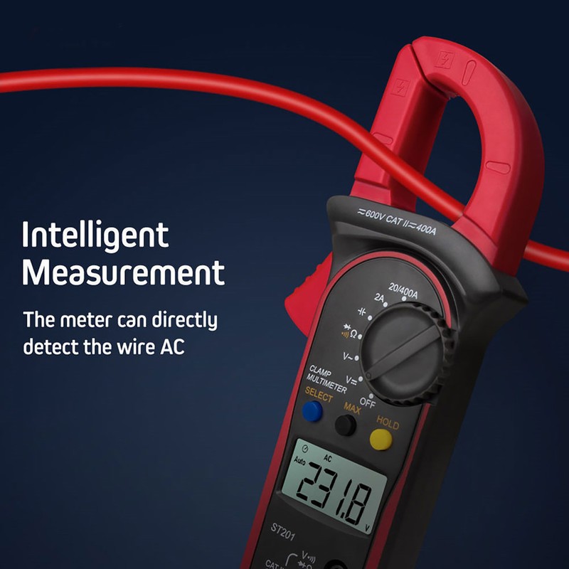 ST201 Automatic Digital Clamp Meter Current Multimeter DC/AC Voltage Diode Tester(Red)