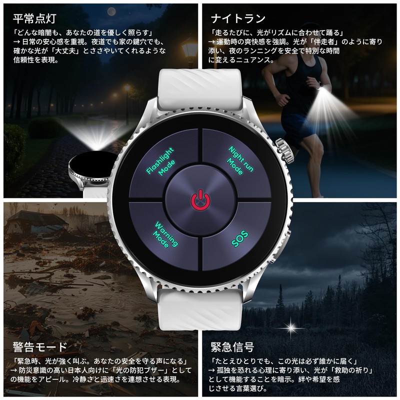 - 4. 4 Color Customizable Lights & Emotional Shows "Express Your Emotions with Light" Equipped with 4 unique LED light modes (i.e. calm blue, passionate red, focus green, relaxed purple). Light feedback during notifications and achievement of exercises, creating a sense of achievement. It can also be used as a "SOS warning light" when running at night, providing both safety and emotional satisfaction