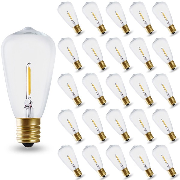 ST38 E17 Base LED String Light Bulbs 0.65W LED Edison Replacement Bulbs(25-Pack), Clear Glass, AC 120V, 7 Watt Equivalent Warm White 2700K for String Lights Indoor Outdoor