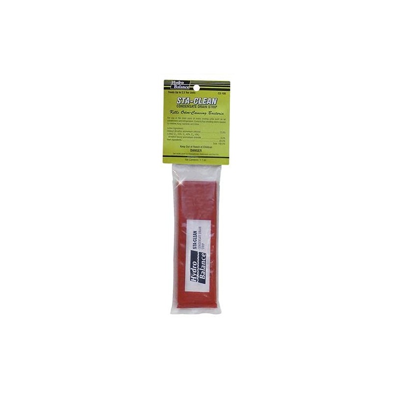 - Place in drain pan as far from drain as possible, Hydro Balance Sta-Clean Condensate Pan Strips with built-in corrosion inhibitor will not cause rust in drain pans and are easy to remove at time of maintenance.