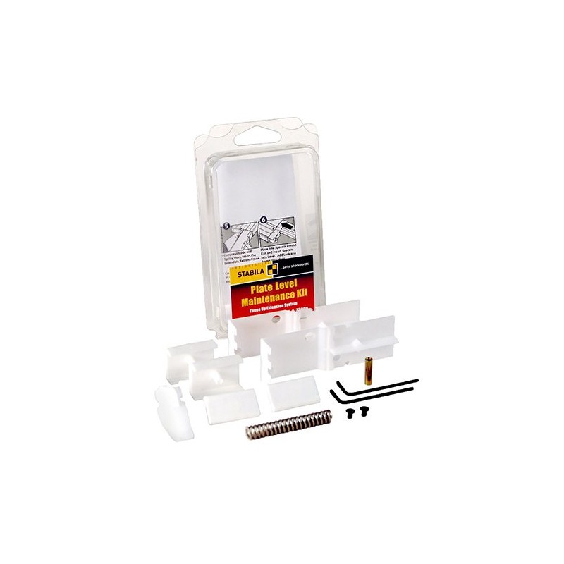With a Stabila Plate Level Maintenance Kit, you'll easily return your well- used Stabila plate level back to as-new working condition. This kit contains the parts needed to replace the old lock mechanism and nylon glides. You can maintain your plate level in only 10 minutes. Just remove the locking pin with the provided hex keys, then remove the locking mechanism and pull out the slide extension. The nylon bushings and tension spring are easy to replace with the new ones provided. Once the extension is back in place and you've installed the new locking mechanism, your plate level will be back to its optimal working condition. The quality nylon bushings in this replacement parts kit will keep the slide moving smoothly and will help maintain a tight fit when extended. We recommend installing a Stabila plate level maintenance kit once a year for plate levels you use daily.