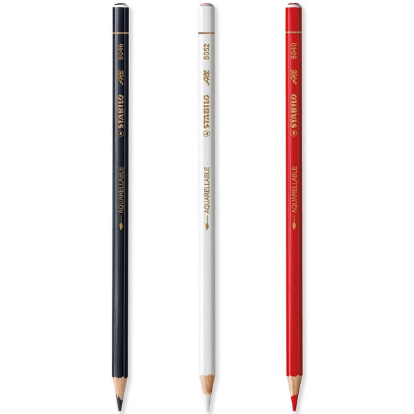 STABILO All Watercolour Effect Pencil Pack of 3 Pencils - Black, White & Red