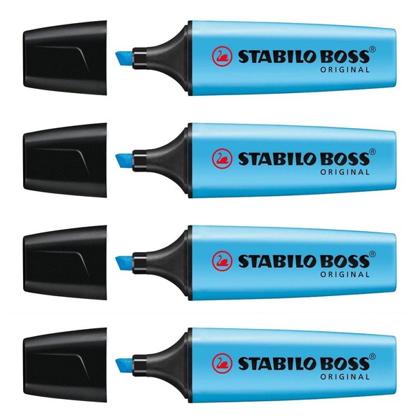STABILO Boss Original Refillable Highlighters with Bevelled Point 2-5 mm Pack of 4 Blueaa