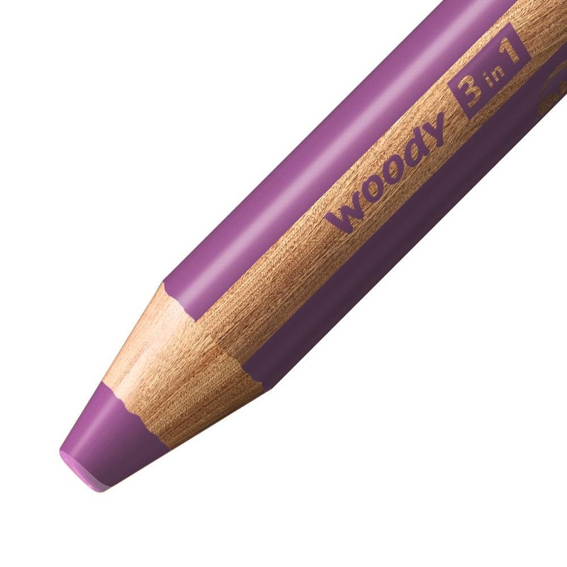 STABILO - Colouring Pencil, Watercolour & Wax Crayon - Woody 3 in 1 - Anniversary Edition - Unicorn - Pack of 6 with Sharpener - 6 Colours