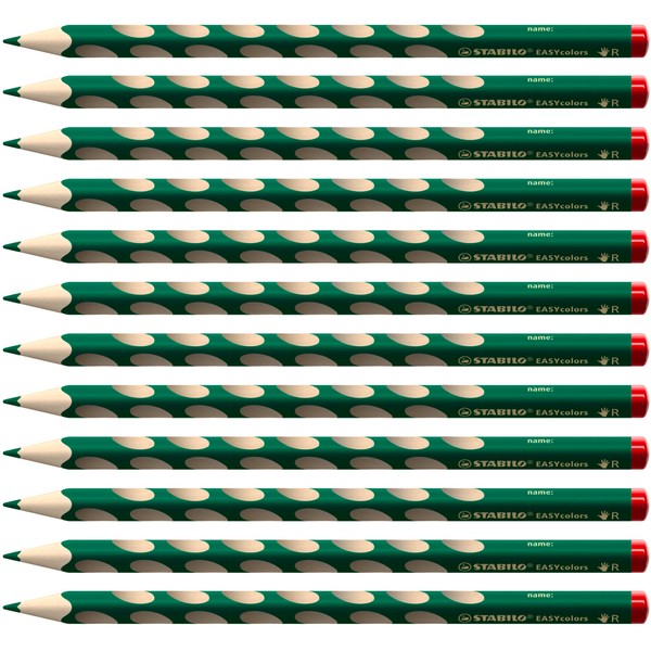 STABILO - Ergonomic colouring pencil for right-handed users - EASYcolors - 12 pack - green