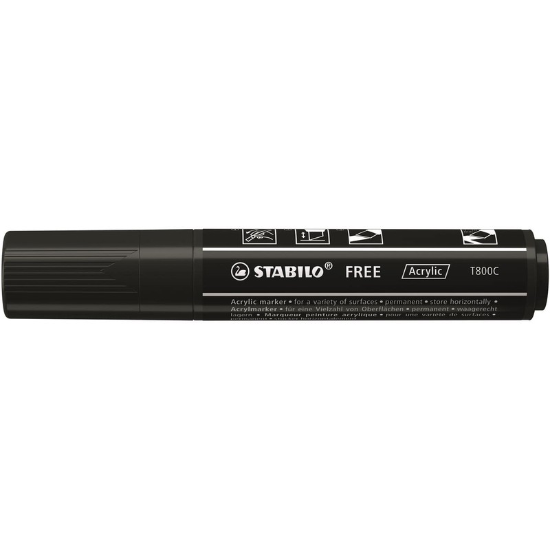 STABILO FREE Acrylic Marker T800C - Black (Pack of 3)