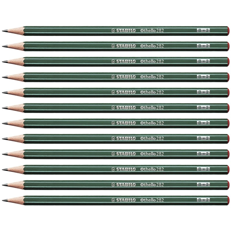 STABILO Othello 282/B Pencil B Green with Stripes (Pack of 12)
