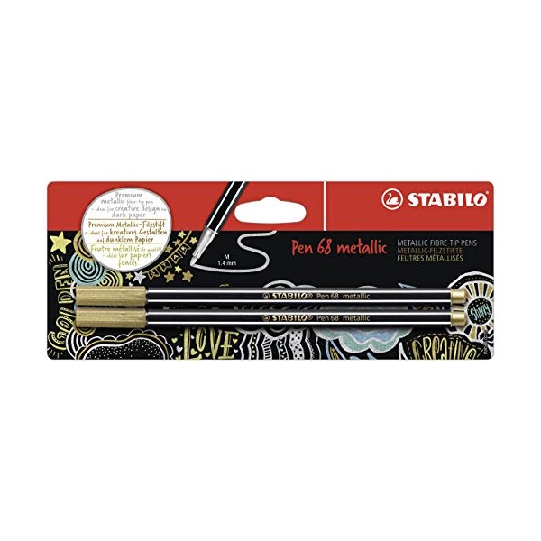 STABILO Pen 68 Metallic Multiliner, Gold, 2/Pkg.