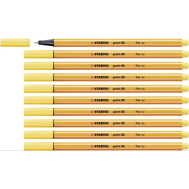 STABILO Point 88 Fineliner Pen,Yellow,Pack of 10