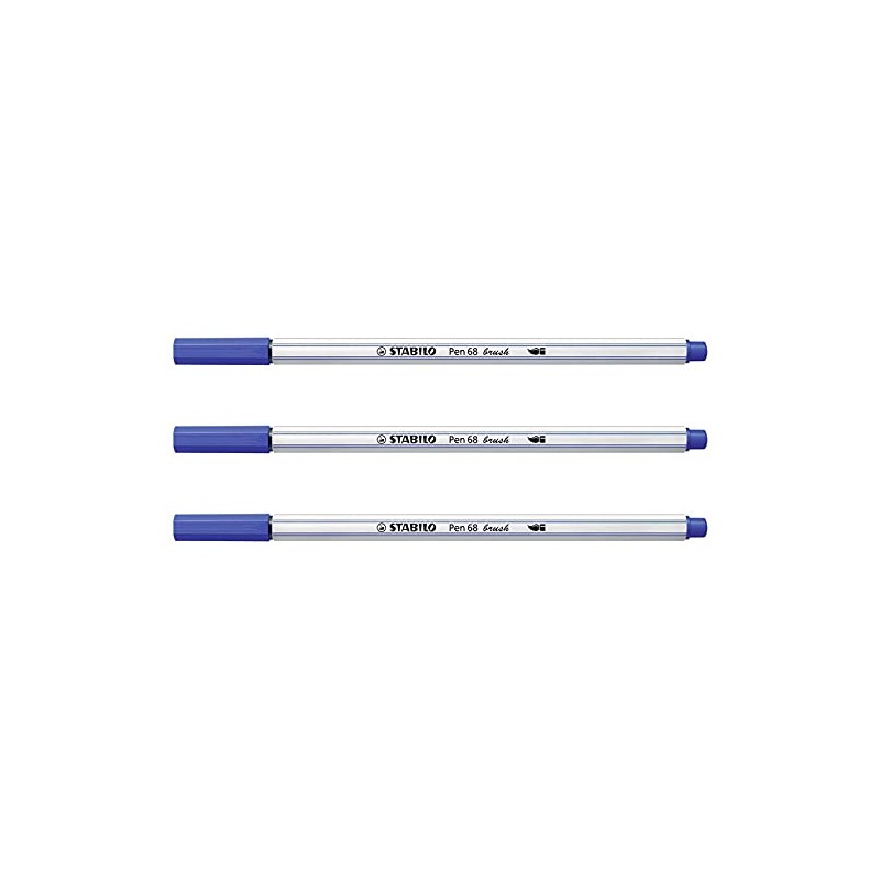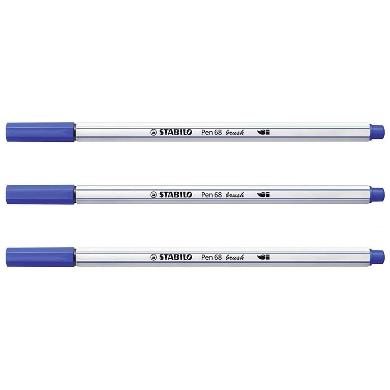Stabilo Set of 3 Felt Tip Pens 68 Brushes Ultramarine Blue