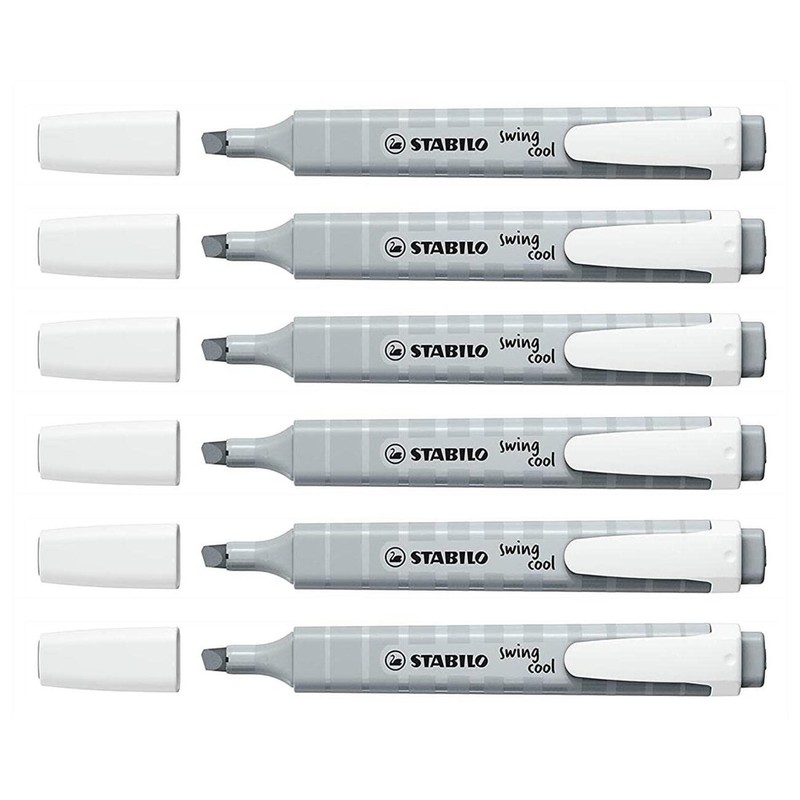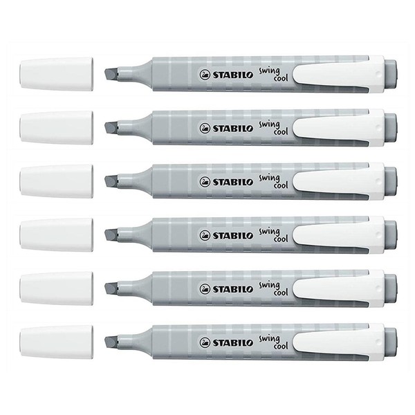 STABILO Swing Cool Highlighters Pastel Bevel Tip Silk Grey Pack of 6aa