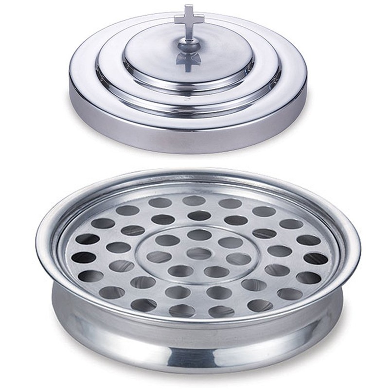 Stackable 12 1/4" Communion Tray & Cover and 40 Hole Insert for cups - Silver Tone Aluminum