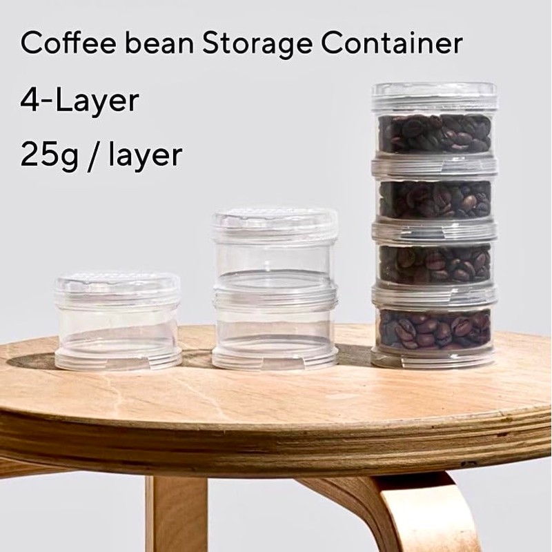- Portable Capacity: Total 4 layers can hold 100 grams/ 3.5 oz coffee bean. Each container can hold 25 grams/ 0.88 oz coffee bean. Single dose coffee bean storage. Prepare four servings of coffee beans or coffee powder for one to two people in advance. Save your precious time.