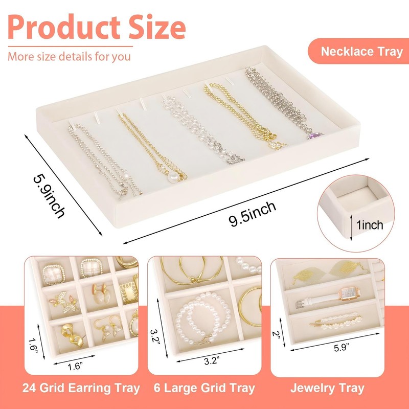 ăSmall Jewelry Trays for Drawersă- each tray measures 9.45inch x 5.91inch x 0.98inch (L x W x H), fits in most drawers, dressers or shelves. Perfect gift for women and girls for Christmas, Birthday, Anniversary, Valentine's Day, Mother's Day.