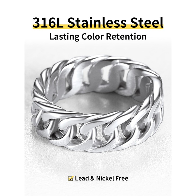 - ✦Cuban Link Rings - Quality Stainless Steel Built, Keep Color Forever. Never Fade, Highly Resistant to Rust and Corrosion.