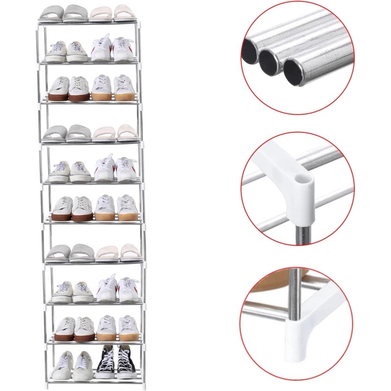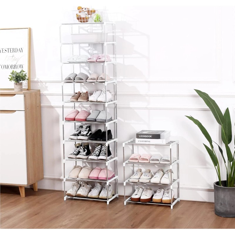 - This shelves fit boots, high heels or slippers and Stores up to 8-10 pairs of shoes.