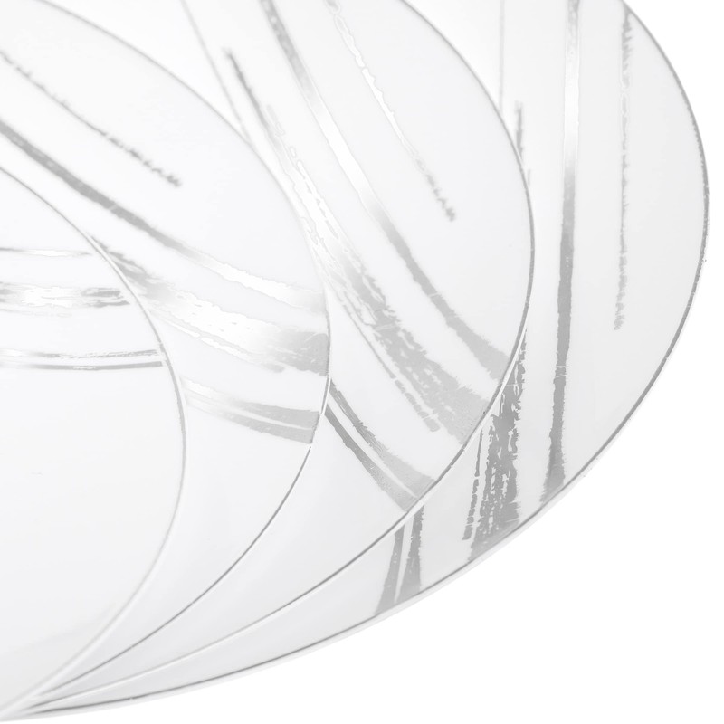 - 🍛 Turns A Meal Into A Presentation ➻ Your tableware is a direct reflection of your hosting standards and proper plating is what takes a meal from ordinary to extraordinary. These plastic plates are the perfect way to elevate any meal. The classic finish will complement any color scheme or party decor. Our white plastic plates with silver design will enhance the appearance of your food displays and turn your party into a memorable experience.