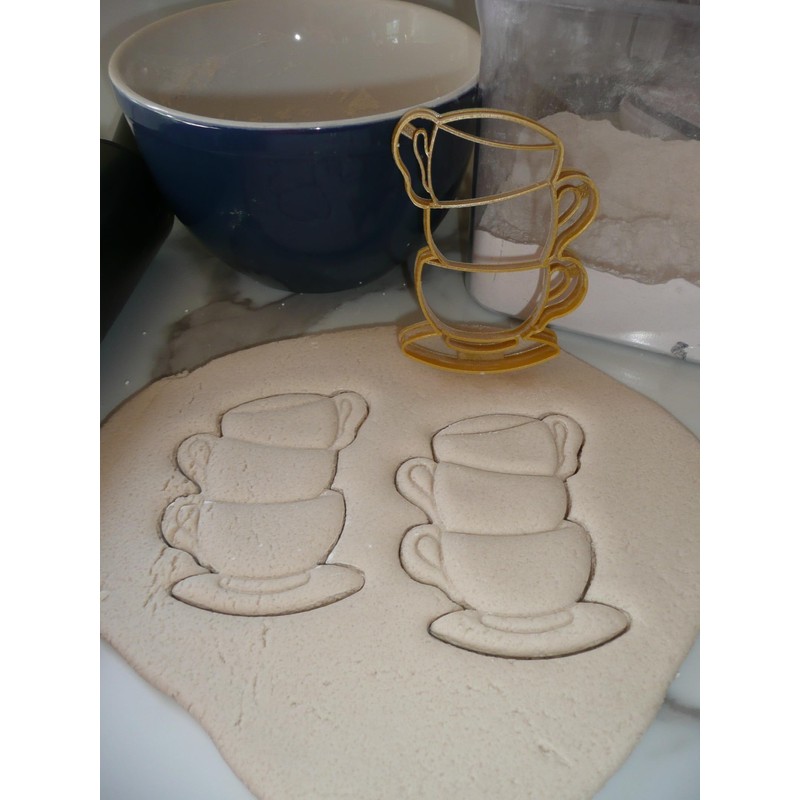 STACKED TEACUPS TEA CUPS DETAILED SHAPE COOKIE CUTTER MADE IN USA PR5202