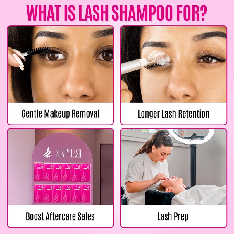 - Deep Cleansing with Lash Shampoo – Specially formulated lash extension cleanser removes dirt, oils, and eye makeup without compromising retention. Perfect for daily care.