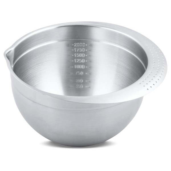 - Mixing bowl with incorporated milliliter markings, handle and pouring aid