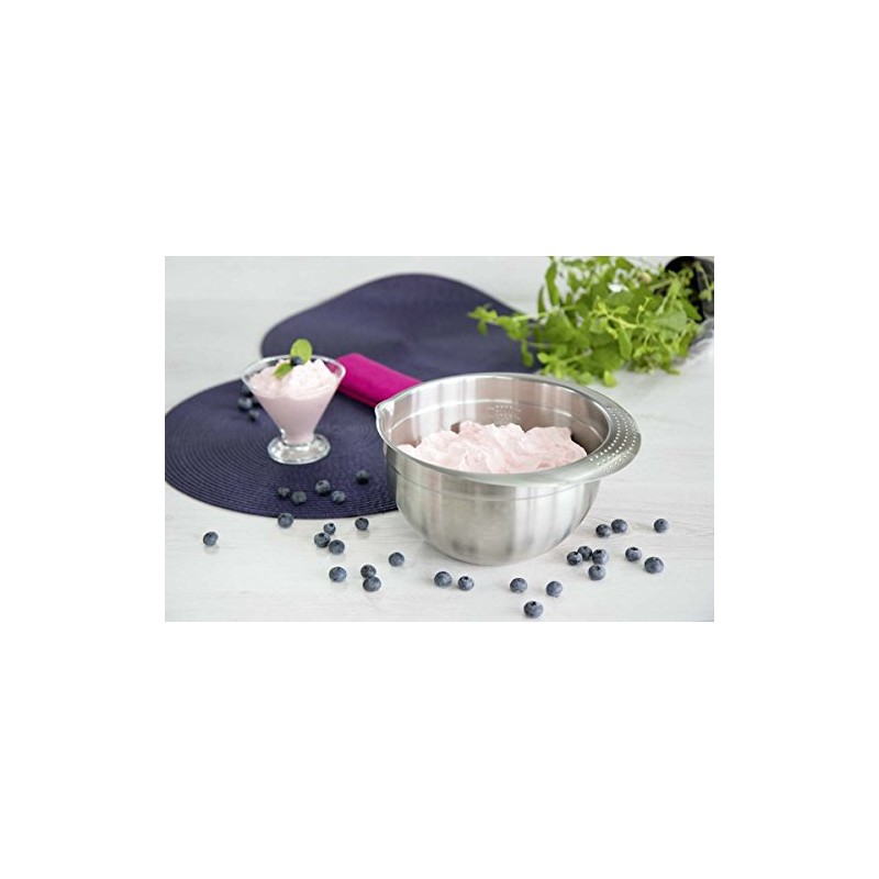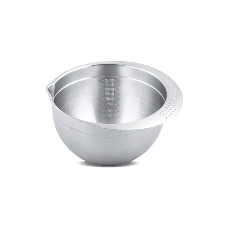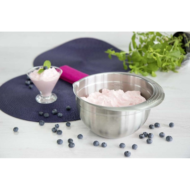 - Mixing bowl with incorporated milliliter markings, handle and pouring aid