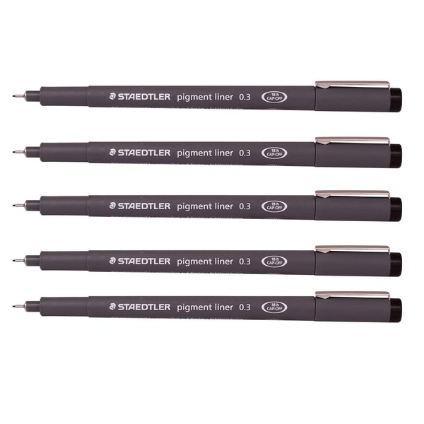 Staedtler 0.3 mm Pigment Liner Fineliner Sketching Drawing Drafting Pens Pack of 5