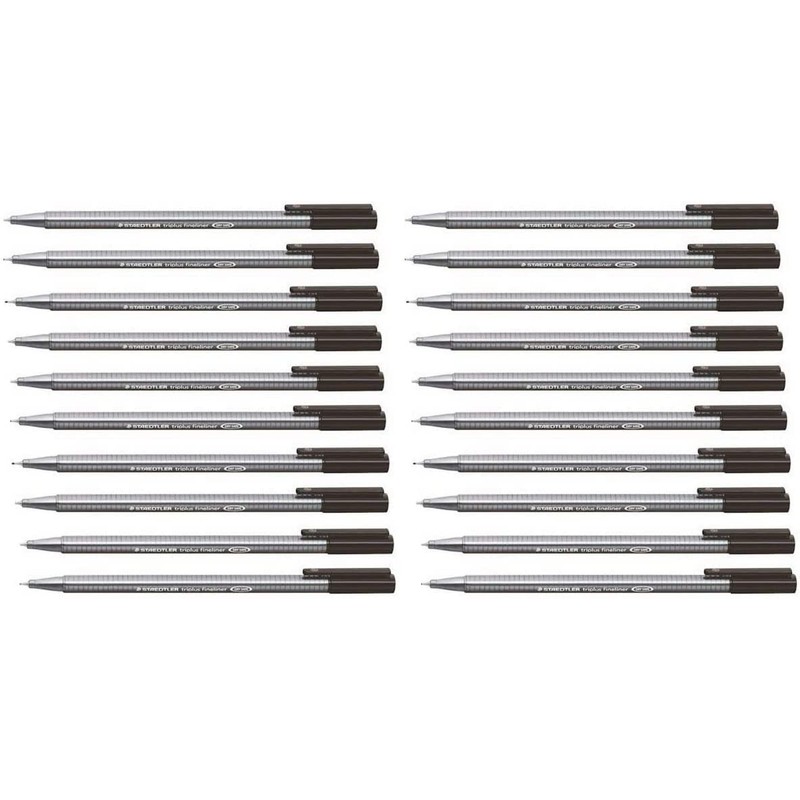 - This set contains twenty black inked fine liner pens by Staedtler.