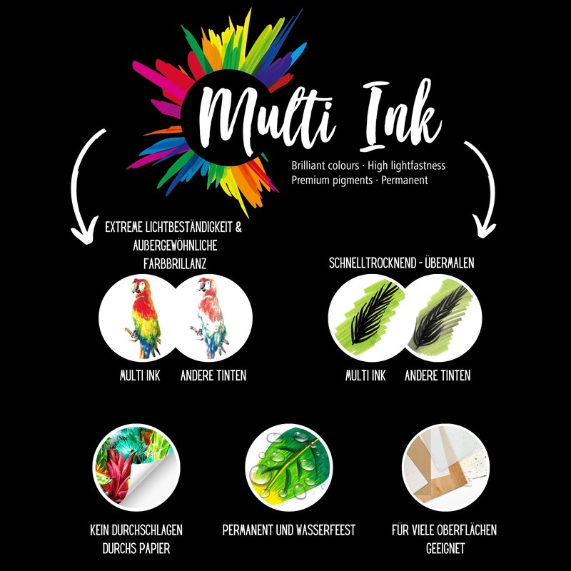 - Multi Ink - Premium Drawing Ink: The latest ink technology with high-end pigments combines colour brilliance with extremely long-lasting light resistance on a variety of surfaces